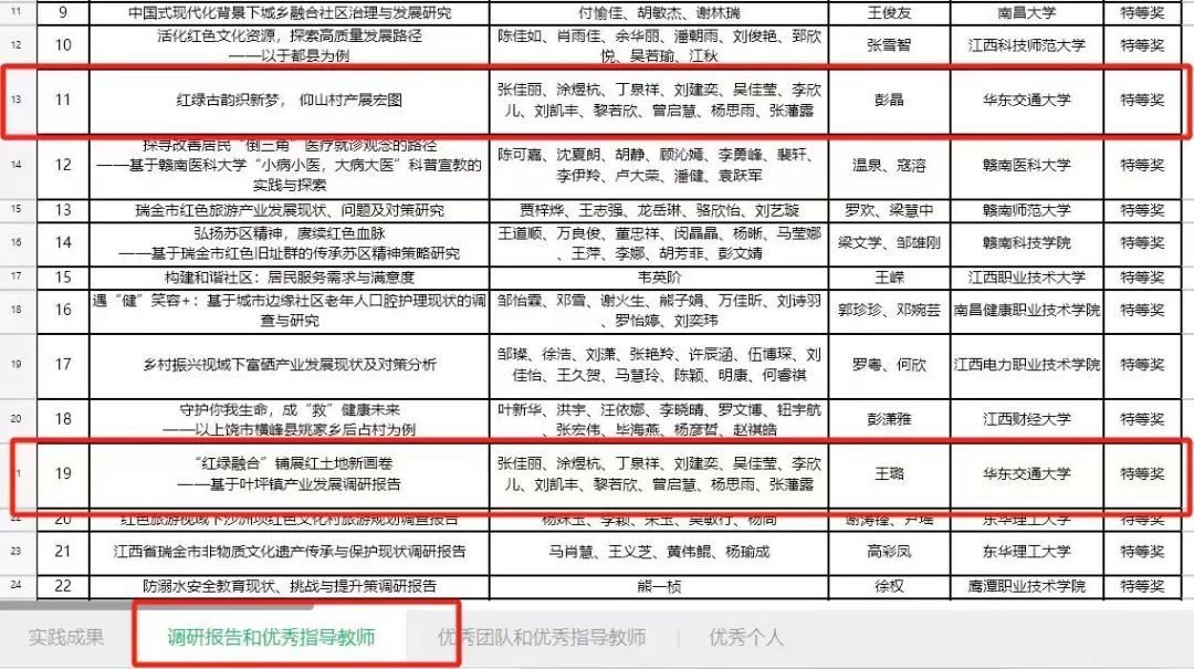 近日,江西省教育厅公示关于“强国有我、青春有为”暑期社会实践活动暨2024年“万名老员工进千站”文明实践志愿服务行动评审结果,公司喜获佳绩。其中斩获优秀实践成果一项、优秀调研报告和优秀指导老师特等奖两项、优秀团队和优秀指导老师两项。在彭晶、王璐、李宇卿等多位指导老师的带领下,“红心寻梦,辉映叶坪”暑期实践队的队员们,认真完成暑期实践任务,其中张佳丽、曾启慧、黎若欣、丁泉祥四位同学表现突出,荣获优秀个人荣誉称号。