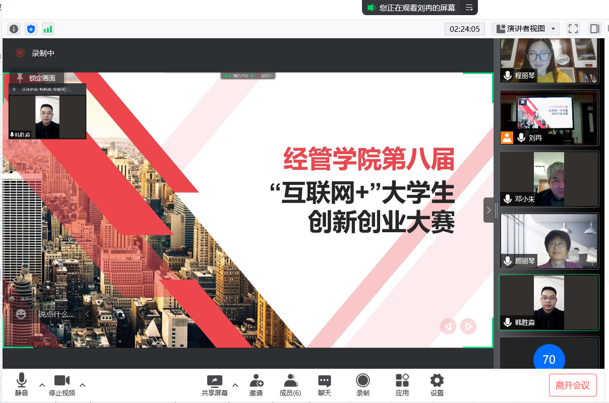评委老师有创新创业学院韩胜淼老师,经管学院顾丽琴教授、邓小朱教授、程丽琴老师。