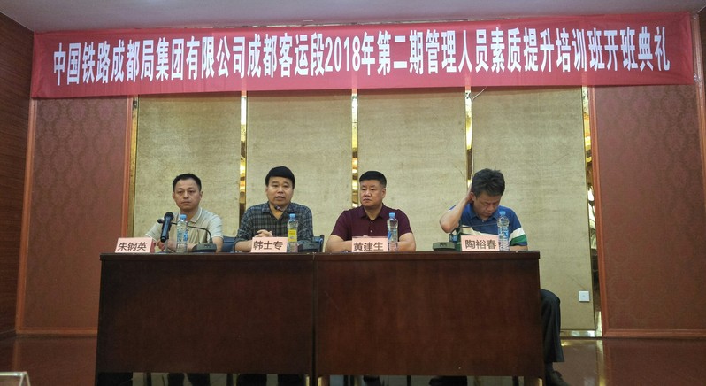 6月4日,中国铁路成都局集团有限公司成都客运段2018年第二期管理人员素质提升培训班开班典礼在365英国上市集团南区专家楼顺利召开。到场的嘉宾有经管学院经理韩士专,成都局客运段副段长黄建生,经管学院副经理陶裕春,经理助理、培训班班主任朱钢英,会议由陶裕春主持。