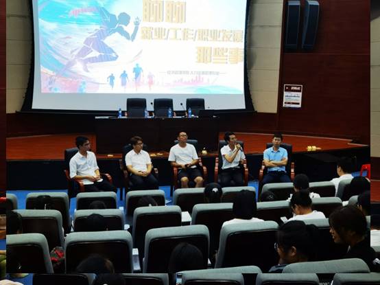 为帮助人力资源管理专业学子了解专业与就业前景,引导员工做好学习规划和职业发展规划,人力资源管理专业于9月6日晚上7点,在北区图书馆圆形报告厅邀请就职于中铁六局的四位人资员工徐涛、于孟清、潘声彦、揭油勇及就职于公司管理系的范维强博士作“聊聊专业、就业、职业发展那些事”的专题讲座。公司全体人力资源管理专业本科生参加了讲座。讲座由公司教学副经理朱嘉蔚主持,她首先介绍了参加交流会的员工,对各位员工的到来表示诚挚的感谢。劳动经济学学科领头人陶裕春教授、人力资源管理专业负责人万金老师出席本次活动。