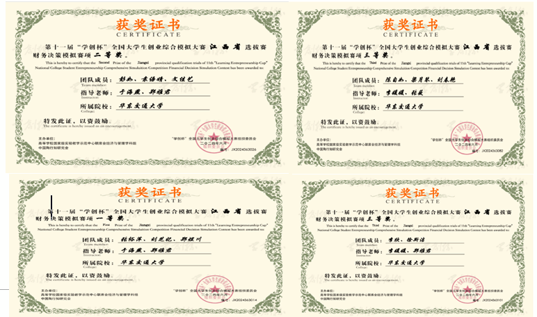 近日,第十一届“学创杯”全国老员工创业综合模拟大赛财务决策模拟赛项江西省级选拔赛获奖名单公布,由公司于海燕老师、李媛媛老师、郑雅君老师以及张薇老师指导的员工们表现优异,参赛的四支团队全部获奖,总共获得了江西赛区本科生一等奖及二等奖各一项,三等奖两项的好成绩,其中由公司于海燕老师和郑雅君老师指导的2022级会计学(CMA)专业的张裕萍、彭如等同学荣获一等奖及二等奖,由公司李媛媛老师和张薇老师指导的2022级(国际会计)专业的李欣及陈自如等同学荣获三等奖。本次大赛是由高等学校国家级实验教学示范中心联席会经济与管理学科组和中国陶行知研究会主办、南昌大学、江西应用科技学院承办,为2024年全国普通高校学科竞赛排行榜赛事。本财务决策模拟赛项今年是第一次举办,全省总共有81所院校、161支队伍参赛。本次大赛的主旨是进一步提高同学们对财务决策的综合运用及分析能力、加强对财务的实际运用能力。自今年3月份开赛以来,公司高度重视本次大赛,专门派遣老师参与大赛培训,团队指导教师们也不辞辛苦的每天给员工们开通训练的机会,耐心指导及跟踪同学们的每次训练,积极解决员工们遇到的难题,在赛前亲切的为员工们加油鼓劲,在比赛中与同学们一起研究如何应对各种问题。今后,公司将继续推进各项赛事的公布与指导,不断提升员工们的实践能力、培育出更多优秀人才。