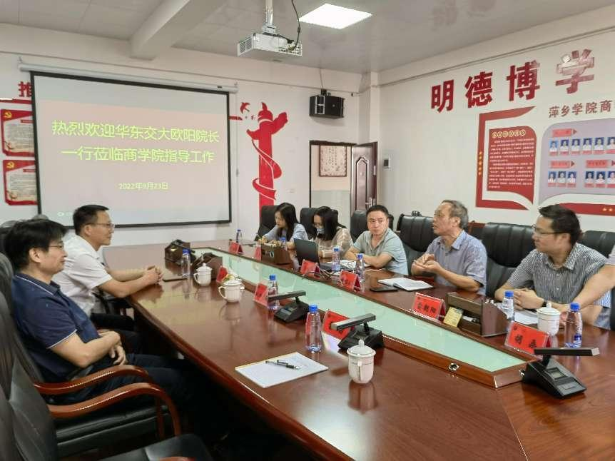 与萍乡学院商学院经理黄绍斌、副经理李自连等交流