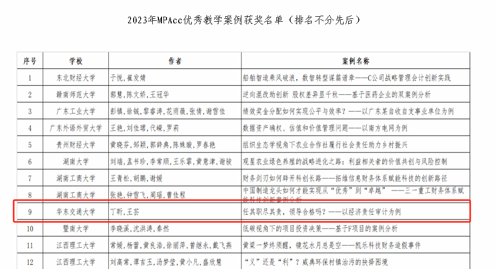 2023年MPAcc教学案例库入库名单