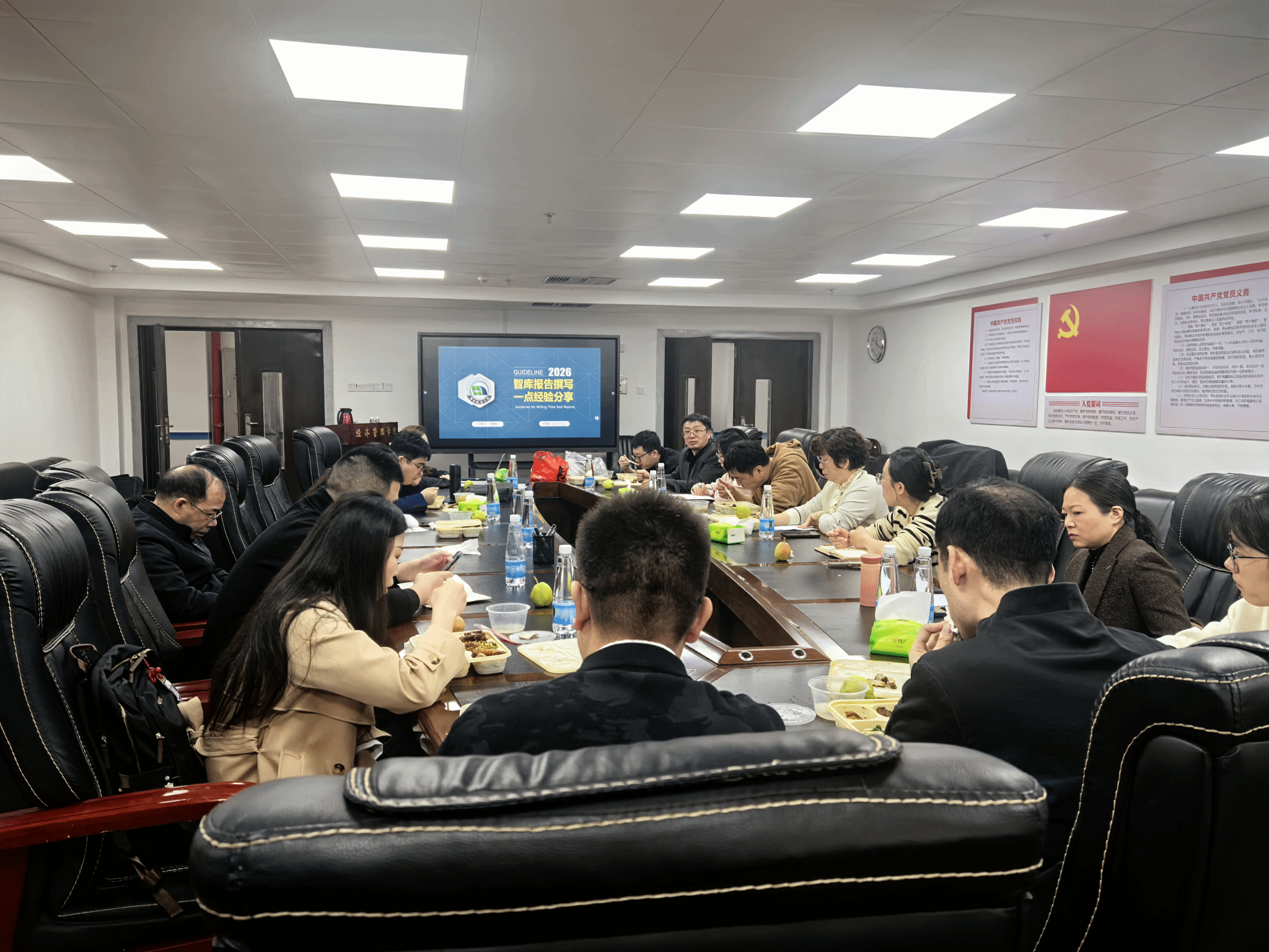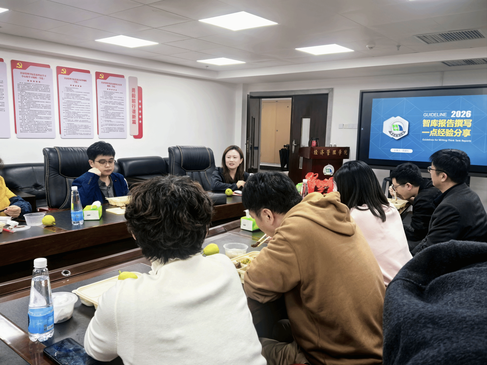 为进一步提高公司师生撰写智库报告水平,明晰智库报告创作逻辑与核心要点,4月2日中午,公司于英国上市公司36531栋908室顺利举办本学期第一期学术午餐会。本次午餐会以“智库报告撰写一点心得分享”为主题,邀请到周晨松副教授进行分享,会议由副经理周才云教授主持,学院20余名师生参与本次午餐会。