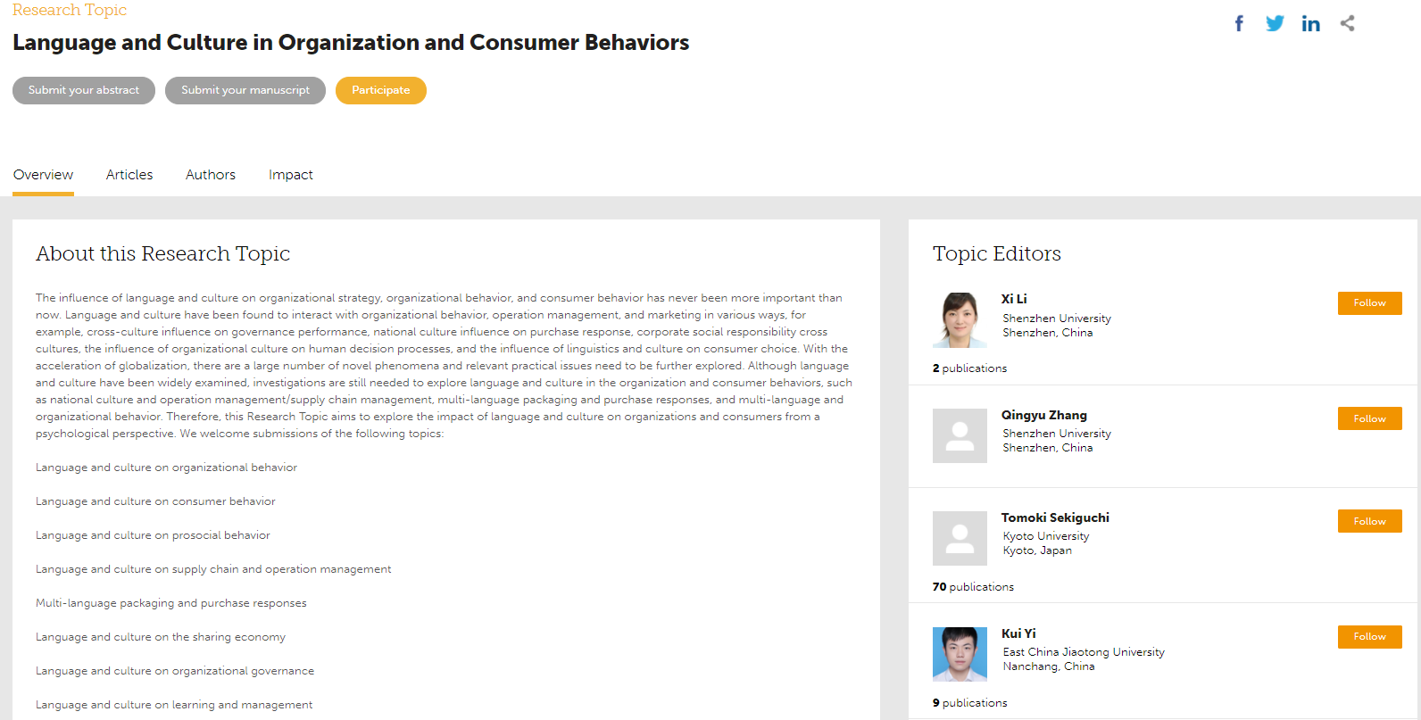 投稿链接:https://www.frontiersin.org/research-topics/42013/language-and-culture-in-organization-and-consumer-behaviors