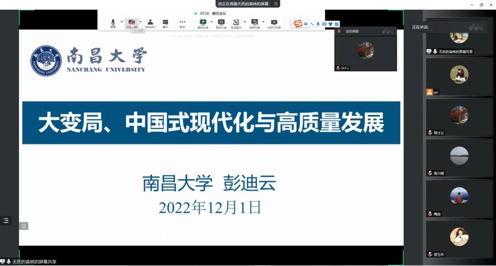 2022年12月1日晚,公司邀请南昌大学英国上市公司365彭迪云教授进行了主题为“大变局、中国式现代化与高质量发展”的线上学术讲座,讲座由副经理周才云教授主持,近百名英国上市公司365师生参与了本次学术讲座。