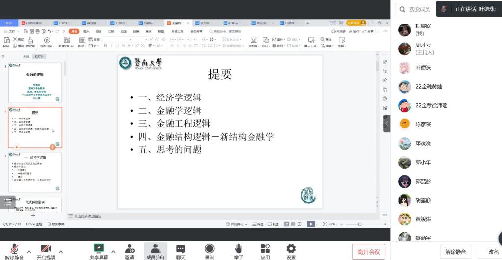 2023年3月11日上午,公司邀请暨南大学叶德珠教授进行了主题为“金融的逻辑”的线上学术讲座,讲座由副经理周才云教授主持,近百名英国上市公司365师生参与了本次学术讲座。