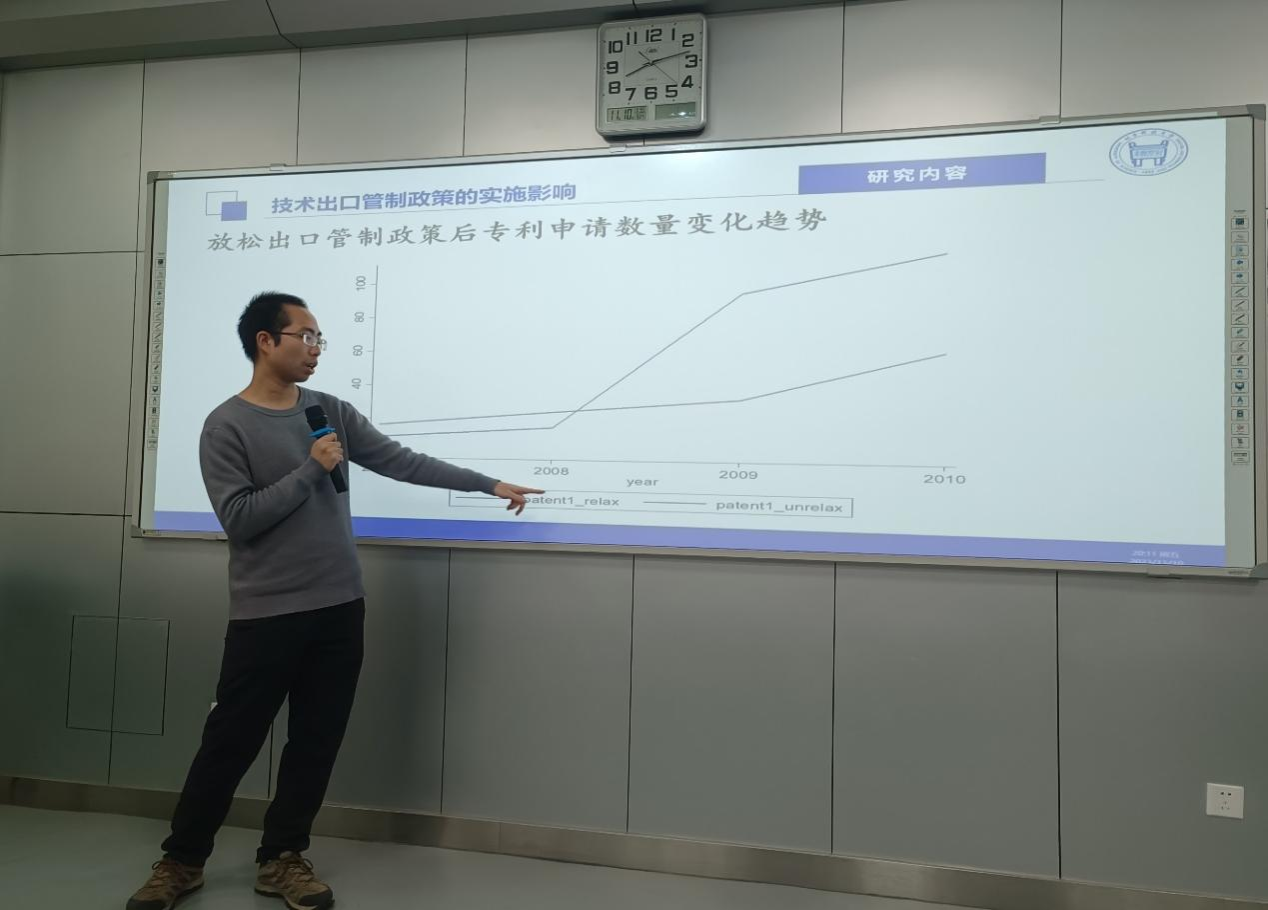 李昊洋老师的讲座围绕“技术出口管制背景”、“为什么世界各国实施技术出口管制”和“中国技术出口管制对公司投融资的影响”三部分内容展开。在讲座中,李老师首先回顾了二战以来各国出台技术出口管制政策的背景,并从不同的理论视角,剖析了世界各国实施技术出口管制的原因。紧接着,李老师重点报告了中国技术出口管制对我国上市公司创新投资活动与企业债务融资活动的影响。报告从文献梳理、研究方法、具体研究设计到研究结论进行了全面细致的阐述和论证。李老师分享的学术报告,研究内容丰富、研究方法创新、研究论证严谨,给在座的老师和同学们带来了深刻的启发和思考,增强了师生对学术探讨的热情。