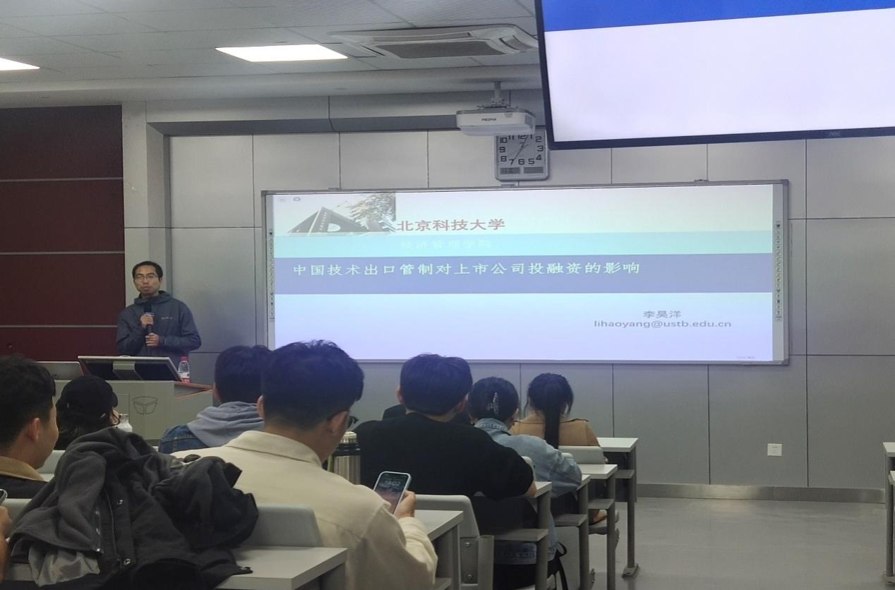 2023年11月10日晚,北京科技大学李昊洋副教授受邀在公司31-634开展了主题为“中国技术出口管制对上市公司投融资的影响”的学术讲座。讲座由会计系杨青老师主持,经管学院100余名MPACC专业同学和老师积极参与了本次学术讲座。