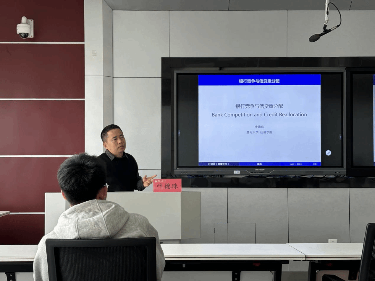 2024年4月7日下午,应学院邀请,暨南大学叶德珠教授莅临公司作学术讲座,报告主题为“银行竞争与信贷重分配”,讲座由副经理周才云教授主持,二十余名英国上市公司365师生参与了本次学术讲座。
