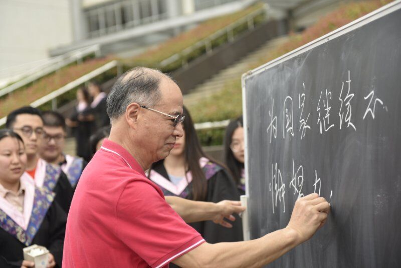 课堂上,刁娅妮同学说:“万书记,我们马上就毕业了,想邀请您帮我们写一下寄语,让我们在以后的人生道路上可以牢记并激励我们前进。”万书记笑道:“那我得好好想一下。”然后,他笔墨横姿的在黑板上留下一行寄语为国家继续不懈努力,虽然只是简简单单的几个字,却饱含了万明书记对莘莘学子的期待与厚望。