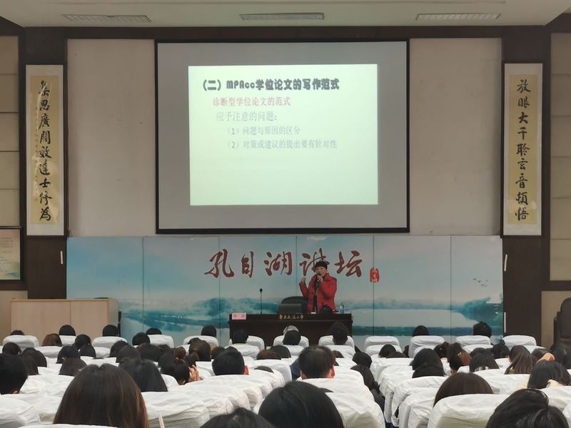 2019年12月12日下午,应公司邀请,全国会计专业学位研究生教育委员会委员、江西财经大学会计发展研究中心主任张蕊教授于交大南区报告厅202作了题为“MPAcc学位论文选题与撰写”的学术讲座。此次讲座由经管学院副经理李冬伟教授主持,全体会计专硕师生现场聆听讲座。