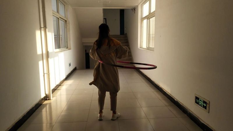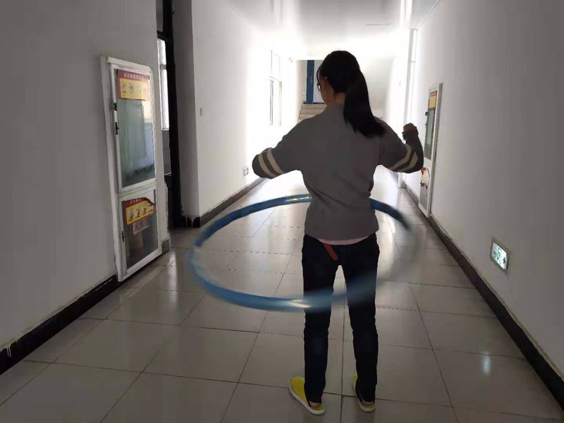 初次训练,大家都还没有把握要领,把控不住的呼啦圈令小组成员哭笑不得,但成员之间相互帮助,他们旋转的时间越来越长,甚至还想要开发出新的玩法。简单易学的运动使同学们在学习中在宿舍内也可以随时锻炼,练出马甲线指日可待!