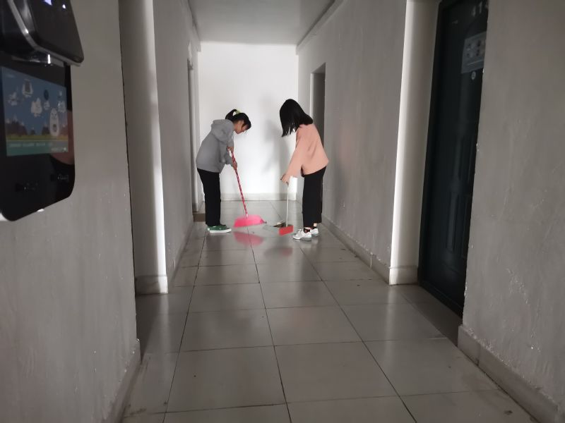 温暖的阳光透过干净明亮的窗几照到洁净如新的地板上,整洁温馨的校园环境是我们每个人都期待的,也是需要我们共同维护的。在本次志愿服务中,金融一班的同学负责31栋架空层的垃圾清扫,桌椅整洁工作。精致的木桌,满眼的绿意,安静的环境使31栋架空层成为同学们最爱的学习场所之一。金融一班同学认真扫地,擦桌等一系列清洁工作,带走了这里的尘埃,留下属于大家的整洁。金融二班和三班的同学负责44栋,45栋寝室的卫生清洁。小伙伴们耐心提醒同学把垃圾随手扔到楼下垃圾桶;热心帮助楼管阿姨清理垃圾;细心进行楼道打扫。小伙伴们一起齐心协力让宿舍楼焕然一新。