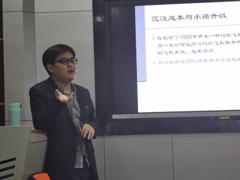 随后,万金博士介绍了产生心理偏差的八大主要原因并给出详尽的解释。一、锚定效应与对比效应:人们以初始值为数据做出估计,然后进行不充分的上下调整。二、判断启发式:人在面临现实任务时,所采用简洁而“精明的”配置和使用资源的方法。三、过度自信:知识幻觉,控制幻觉,自利归因,选择性知觉和证实陷阱等因素共同作用。四、框架效应:表现为单面信息与双面信息的差距;情感激活与信息评估的对立;登门槛与留面子的比较。五、沉没成本与承诺升级:前者指在某一方面投入了金钱,努力和时间之后,人们表现出继续投入的巨大倾向;后者包含了选择性知觉,判断偏差和印象管理。六、厌恶损失:同样数量的收益和损失,损失产生更大的情绪影响。七、禀赋效应:当个人拥有某物品,价值评价比未拥有前大大增加。八、后悔预期:影响因素有是否承担责任、决策是否伴随约束和选择集的大小。在具体分析中,万博士不仅引经据典,更举出许多富有生活气息的例子,同学们不时露出会心一笑,纷纷鼓掌称赞,觉得深受启发。