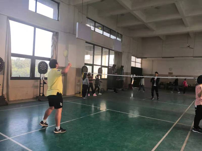 羽毛球场上,人资揭油勇,营销罗勇仪,会计温舒谣等人带着他们的小组成员们正有条不紊地开展训练。右手空心握拍,左手捏着球,让羽毛球自由落下,转身引拍击球,继而将力量集中于落点迅速打出,最后回拍防守。发球过程行云流水,一气呵成,令人赞叹。接球时技巧更甚,扑、搓、钩、推;下压球、四方球、重复球……更有各种灵活步伐,使接球技巧更具可观性。羽毛球在球网上空翻飞,划出一道道优美的弧线,破空之声不绝如缕。打到激烈时,双方你攻我防,你防我攻,难舍难分。