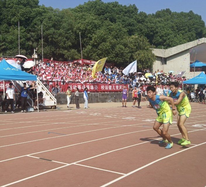 正上午的太阳已经让田径场足够火热,但仍比不上在奔跑中的运动员们炽热的心。发令枪响起,运动员们像离弦的箭一样冲出去,这是一场由四人合作完成的团体赛,更是一场不断超越自我的个人赛,他们眼神坚定,步伐不停,心中只有一个目标——终点!