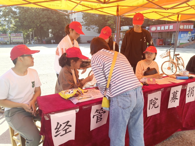 9月22日,由经管学院、人文学院、国际学院、继教学院四院团委联合主办、由经管青协、人文青协、国际青协、继教青协共同承办的“献出一片绿,收获万千情”北区四院募捐军训服活动在北区一食堂门口正式开展。
