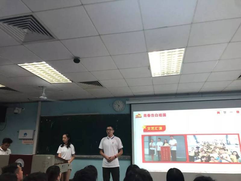 宣讲结束后,全体同学起立,挥动着手中的五星红旗,歌唱《我和我的祖国》歌声告白祖国。旋律响起,全体齐唱,用昂扬的精神和积极的态度唱出了对祖国的热爱,向伟大的祖国告白。