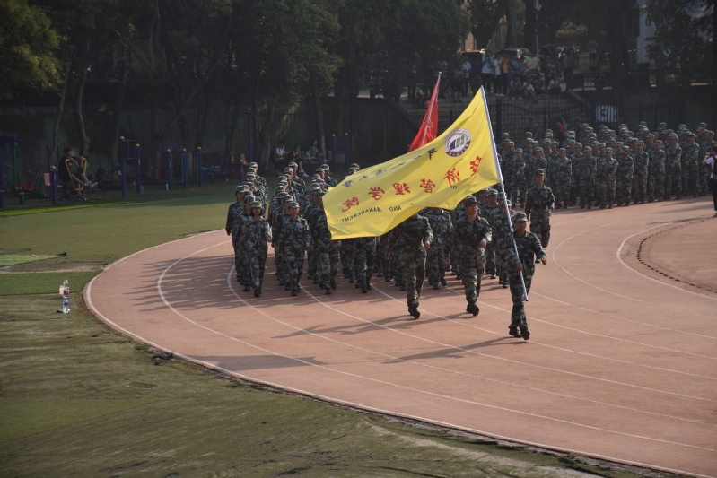 军训汇报表演开始,在校旗的带领下,在雄壮的伴奏中,护旗方队、各学院方正队沿着红色跑道依次正步经过观礼台。整齐的方阵、嘹亮的口号、刚劲的摆臂、有力的踢腿,举手投足间,既透出军人坚毅果敢的气质,又彰显了新一代花椒学子热情昂扬的精神风貌,赢得了观礼台上各位领导和嘉宾、师生的阵阵掌声。