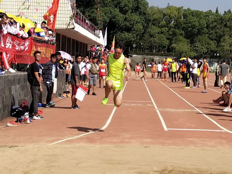 9月30日上午,第36届校运会已接近尾声。经管学院在男子三级跳远预决赛中表现出色。