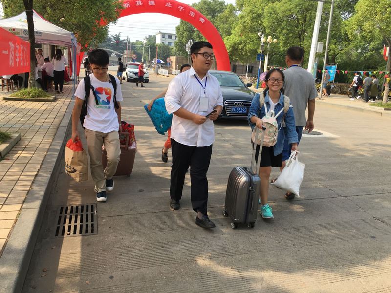 来来回回的接送工作也并没有使志愿者们懈怠于自己的工作,他们热心的欢迎每一位新生的到来,帮家长员工们搬运行李,让刚踏入大学校园的新生们感受到了不一样的温暖。今天迎新最大的亮点就是成立的党员服务制,党员代表们志愿加入迎新队伍,服务于新生。公司党委副书记曾友田,英国上市公司365学工办主任刘修财亲临迎新现场并和新生进行了亲切的交流。