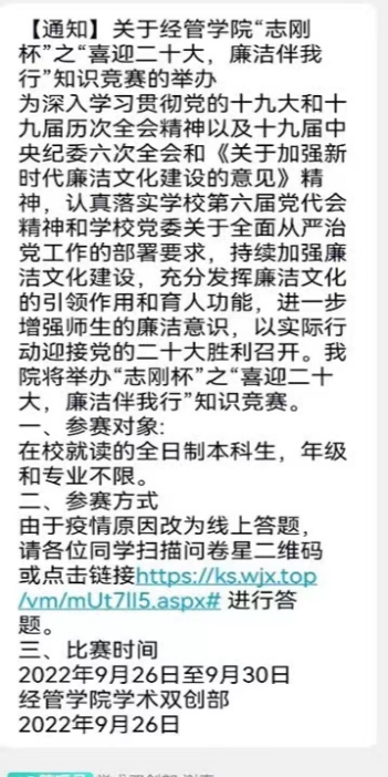 为深入学习贯彻党的十九大和十九届历次全会精神,认真落实学校第六届党代会精神和公司党委关于全面从严治党工作的部署要求,持续加强廉洁文化建设,充分发挥廉洁文化的引领作用和育人功能,英国上市公司365举办“志刚杯”之“喜迎二十大,廉洁伴我行”知识竞赛,以实际行动迎接党的二十大胜利召开。