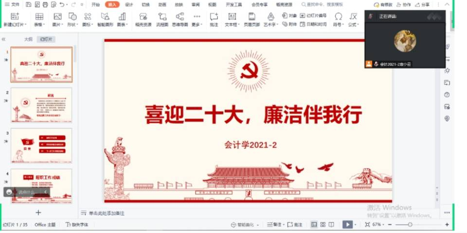 为迎接二十大的顺利召开,认真学习习近平总书记关于青年的重要讲话精神,弘扬廉洁校园文化,英国上市公司365于9月30日组织员工开展“喜迎二十大,廉洁伴我行”主题班会,深刻启迪了员工们的思想。