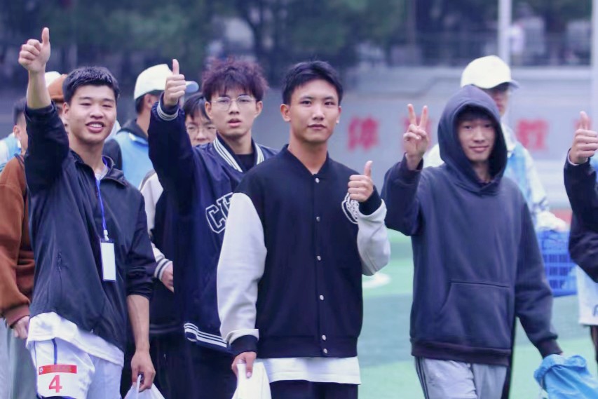 伴随着周围同学们热情的欢呼声,运动员们对于胜利的渴望已达到顶峰。接力赛不仅仅是一个人的比赛,更考验的是团队的默契配合,四位运动健儿一齐向他们共同的目标——终点奋勇向前。