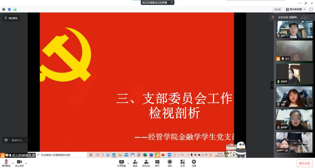 为进一步提高党组织的凝聚力和战斗力,锤炼过硬政治品格,经管学院金融学员工党支部于3月21日召开组织生活会(线上),支部党员、预备党员共计45人参加,公司党委委员、经理李冬伟作为督导列席会议。
