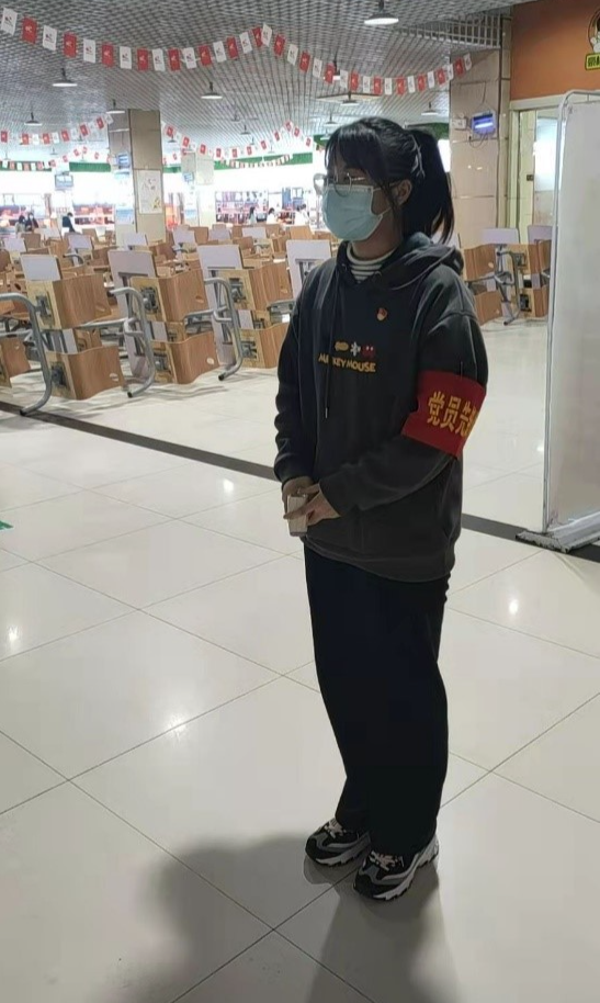 刘可欣,中共党员。疫情突来时立刻响应学校的号召,参加党员先锋队,主要负责北区公共场所的防疫服务。浴室、食堂、图书馆都有她的身影,维护秩序、测量体温、善意提醒同学保持一米间距,确保人员不密集。能作为一名志愿者并贡献自己的一份力量,她认为,这是新时代老员工的使命与责任。