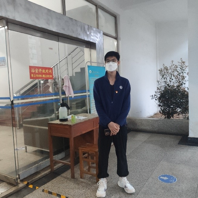 朱坤,中共党员。他是华交第一批党员先锋队的一员,参与了学校组织全员核酸检测的志愿服务和北区公共场所秩序维护工作。面对突如其来的疫情,他自信地说:“虽然我们离病毒这样近,但是我不怕,因为我对我们的祖国、对华交非常有信心”。