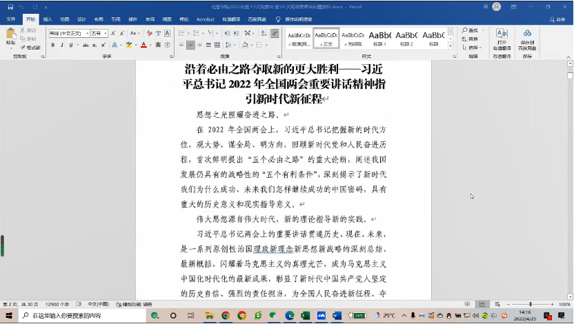 4月25日下午,经管学院线上召开党委理论学习中心组集中学习会,认真学习2022年全国两会精神、《中国共产党宣传工作简史》。本次会议由公司党委书记王朗主持,公司党委委员参加。
