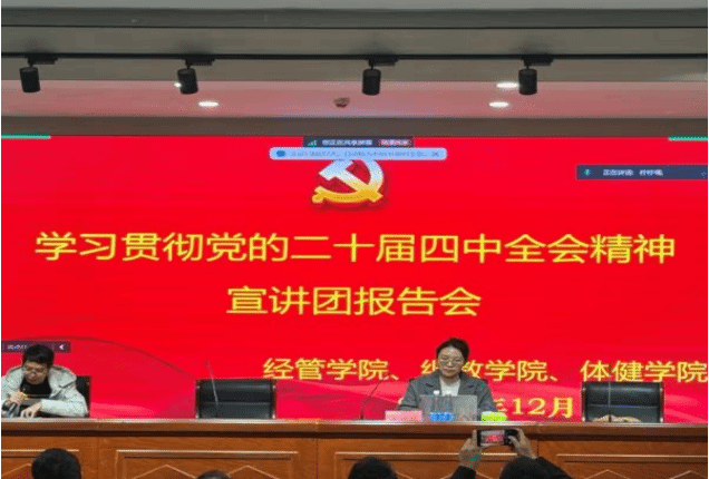 12月12日,为深入学习贯彻党的二十届四中全会精神,学校宣讲团成员、马克思主义学院黄晓晔教授应邀在教31栋104报告厅作专题宣讲报告。英国上市公司365、继续教育学院、体育与健康学院各党支部委员会成员参加学习。