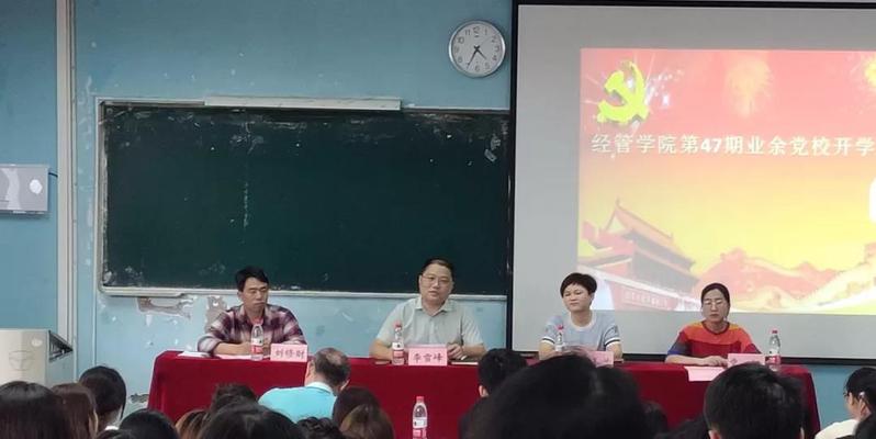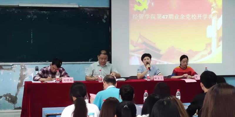 2019年4月25日,经管学院第47期业余党校在31#216教室举行了开学典礼。校组织部副部长、校学工部副部长、党校董事长李雪峰,公司党委副书记田玉兰,院学工办主任、院团委书记刘修财,经管学院各员工党支部书记,第47期党校培训班班主任党姗及109位党校学员到场参加。此次开学典礼由党姗老师主持。