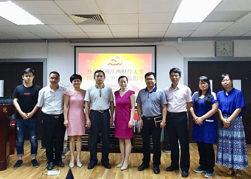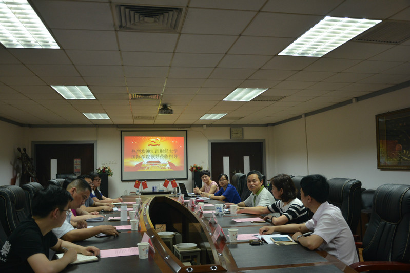 2018年5月15日下午,江西财经大学国际公司党委书记涂艳、党委副书记夏贤锋一行五人来到公司调研,围绕党建团学、教学科研、思政教育与员工培养进行了座谈。公司党委书记胡桃元、副经理李冬伟、党委副书记田玉兰等领导和老师出席座谈会。