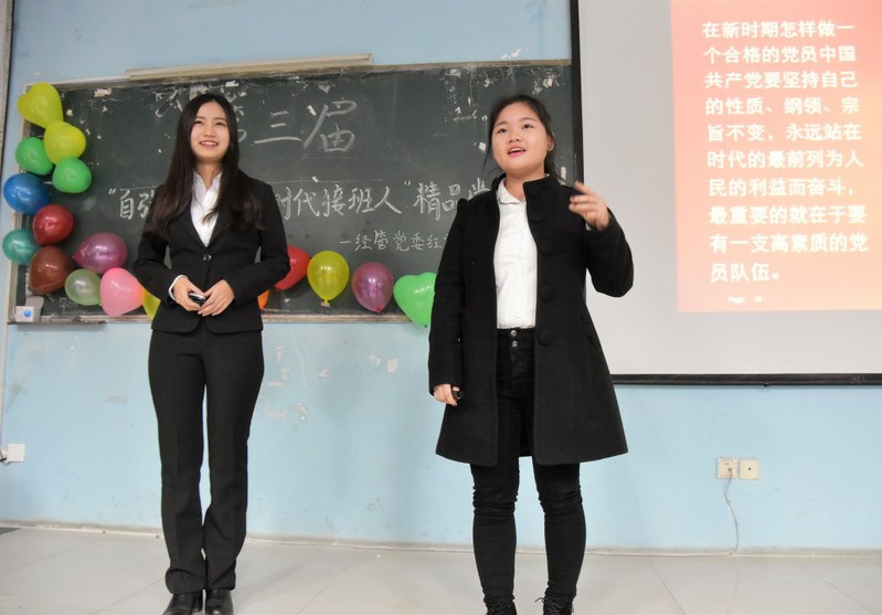 不同于之前严肃的党课,精品党课加入红歌演唱环节,配有诙谐风格的主讲课堂,也不乏严肃端庄的宣誓仪式,一幕幕都带动着观众的心渐渐地走进党的世界。“北辰”队以开拓自己视野,学习科学文化为主题展开论述,主讲人任文珊借《罗马假日》中一句:“身体与灵魂总有一个要在路上”开篇,从党和国家对青年工作的重视、学校帮助老员工开拓视野并学习科学文化、老员工阅读书籍以及积极参加团体活动三个方面展开阐述“开拓自己视野,学习科学文化”主题。