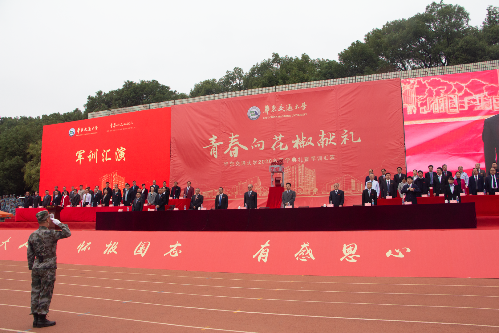 为迎接学校 50 周年校庆,增强新生的爱校荣校情怀,提高新生对学校的认同感与归属感,进一步彰显学校办学形象,切实做好公司 2020 级新生入学思想政治教育工作。10月15日上午8时,“青春向花椒献礼”2020 年开学典礼暨军训汇演在南区田径场隆重举行。全体校领导,各职能部门主要负责同志,各学院经理、党委书记、副书记,2020级新生班级辅导员,2020级全体新生共6000余人参加此次开学典礼,公司党委副书记肖长春主持典礼。