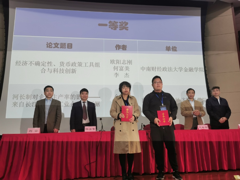 随后,中国技术经济论坛秘书长、中国社会科学院数量经济与技术经济研究所副研究员朱承亮宣读优秀论文获奖名单,公司副经理、教授周才云宣读优秀志愿者名单。本次评审共有17篇优秀论文获奖,一等奖2篇,二等奖6篇,三等奖9篇。其中,公司副经理欧阳志刚参与研究的《经济不确定性、货币政策工具组合与科技创新》获得一等奖,公司经理韩士专参与研究的《The SOE Channel of Monetary PolicyTransmission: Evidence from China’S Rescue Plan in 2008》获得二等奖。