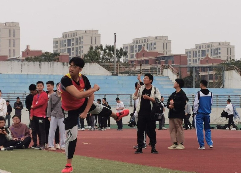 比赛前,赵阳同学积极地做好了热身运动。上场比赛时,随着裁判的一声令下,赵阳同学双手持球上举在头部后上方,肘关节弯曲,然后重心向后,身体挺直,最后协调肢体力量把球扔出。他摆好正确姿势,熟练地挥动手臂,一颗小小的垒球从他手中飞出,在空中划出一道优美自然的弧线。赵阳同学推出的不仅是垒球,更是他无数次练习的成果和无数滴汗水的累积。垒球在空中飞舞,凝聚着运动员的梦想,承载着场外观众们的美好祝愿。在这金秋十月,他用出彩的成绩展示出力量与拼搏,理想与信念,向世界宣告着吾辈少年当自强。