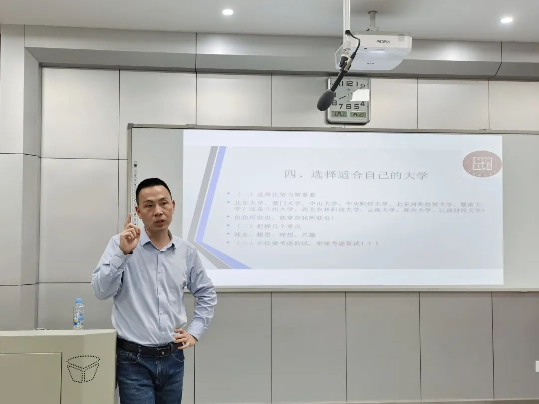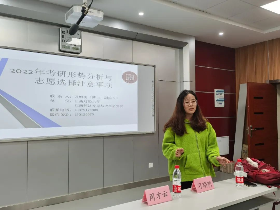 4月20日晚,公司于经纬楼634教室举办 “2022年考研形式分析与志愿选择注意事项”专题讲座。公司特邀江西财经大学经济发展与改革研究院副经理习明明担任主讲,特邀公司副经理周才云作为嘉宾。
