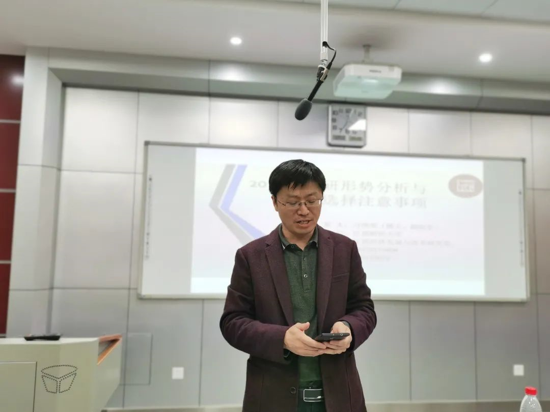 习明明教授首先清晰地罗列了本次讲座的主要内容。习明明教授将近年来考研情况与数据进行分析对比,对当前考研形势做了一个大致的总结以及就江西财经大学2021年的招录形式向大家分析考研需要注意的问题如推免比等重点,并就考研新趋势得出有力结论:要在结构中寻找机会,在选择中寻找优势。习明明教授随即强调选择读研的重要性,表明工作要求、专升本现状、自我实现等方面都是决定是否考研的重要因素。同时,习明明教授指出,要立足自身的实际条件,选择适合自己的大学和专业,科学地规划好自己将来考研的计划。随后,习明明教授就“考研失败了怎么办”问题与在座员工进行贴心交流。