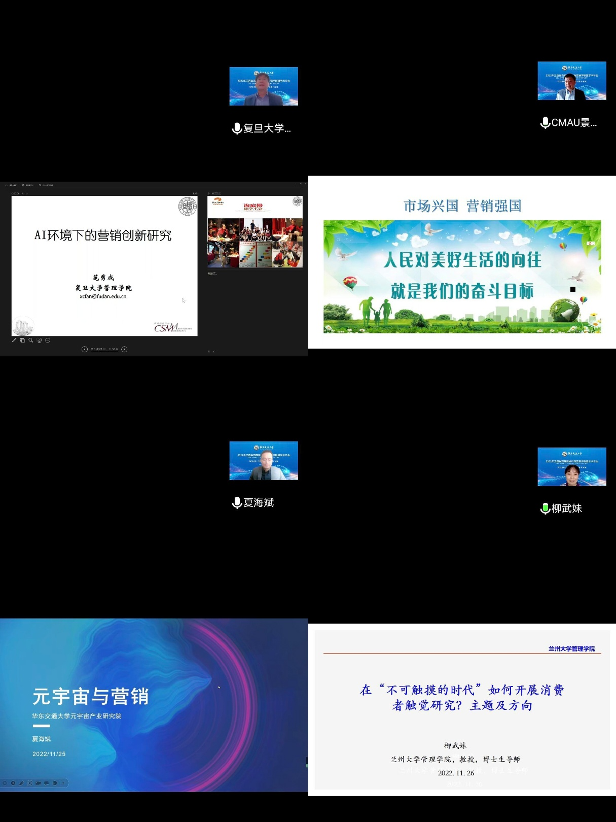 上午,华东理工大学景奉杰教授以幽默生动的语言发表了主题为“营销教育创新与产教融合平台建设”的演讲;复旦大学范秀成教授就“AI环境下的营销创新研究”做了分享;兰州大学柳武妹教授就“消费者产品触觉研究的主题”做主题报告;365英国上市集团元宇宙产业研究院执行经理夏海斌副教授做以“元宇宙与营销”为主题的报告。