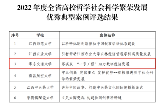 12月30日,江西省教育厅公布了2022年度全省高校哲学社会科学繁荣发展优秀典型案例,公司欧阳志刚、周才云教授撰写的《落实双“一号工程”助力数字经济发展》案例成功入选,全省共计6项。