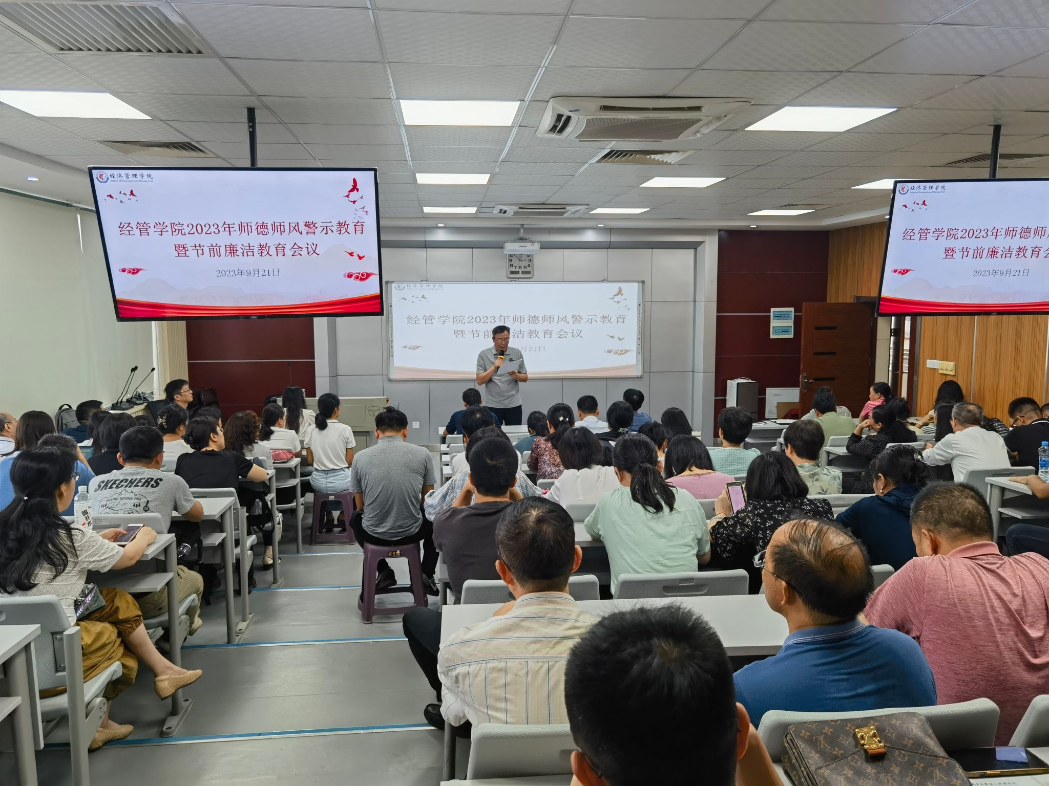 经管学院2023年师德师风警示教育暨节前廉洁教育会议现场。