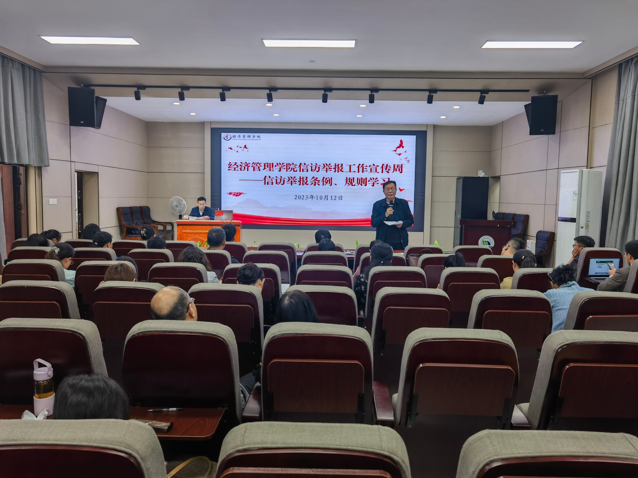 为全面贯彻落实习近平总书记关于加强和改进人民信访工作的重要思想,结合公司2023年信访举报宣传周暨“我为师生办实事”实践活动部署,10月12日,学院召开信访举报工作专题会议。公司党委书记王朗主持会议并讲话。全院教职工参加会议。