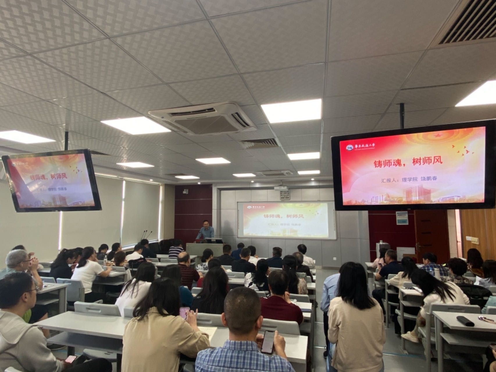 饶鹏春博士以“铸师魂,树师风”为主题,围绕新时代下的师德师风、违反师德师风的具体表现、违反师德师风的典型案例、《新教师法》以及《新时代高校教师职业行为十项准则》等方面,通过以案说法、以案析法、以案析责,教育引导全体教师要将优良的师德师风内化于心、外化于形,自觉坚持师德师风第一标准,追求师德“高线”、严守职业“底线”、严禁行为“红线”,牢记立德树人根本任务,涵养高尚品德,做党和人民满意的“四有”好老师。