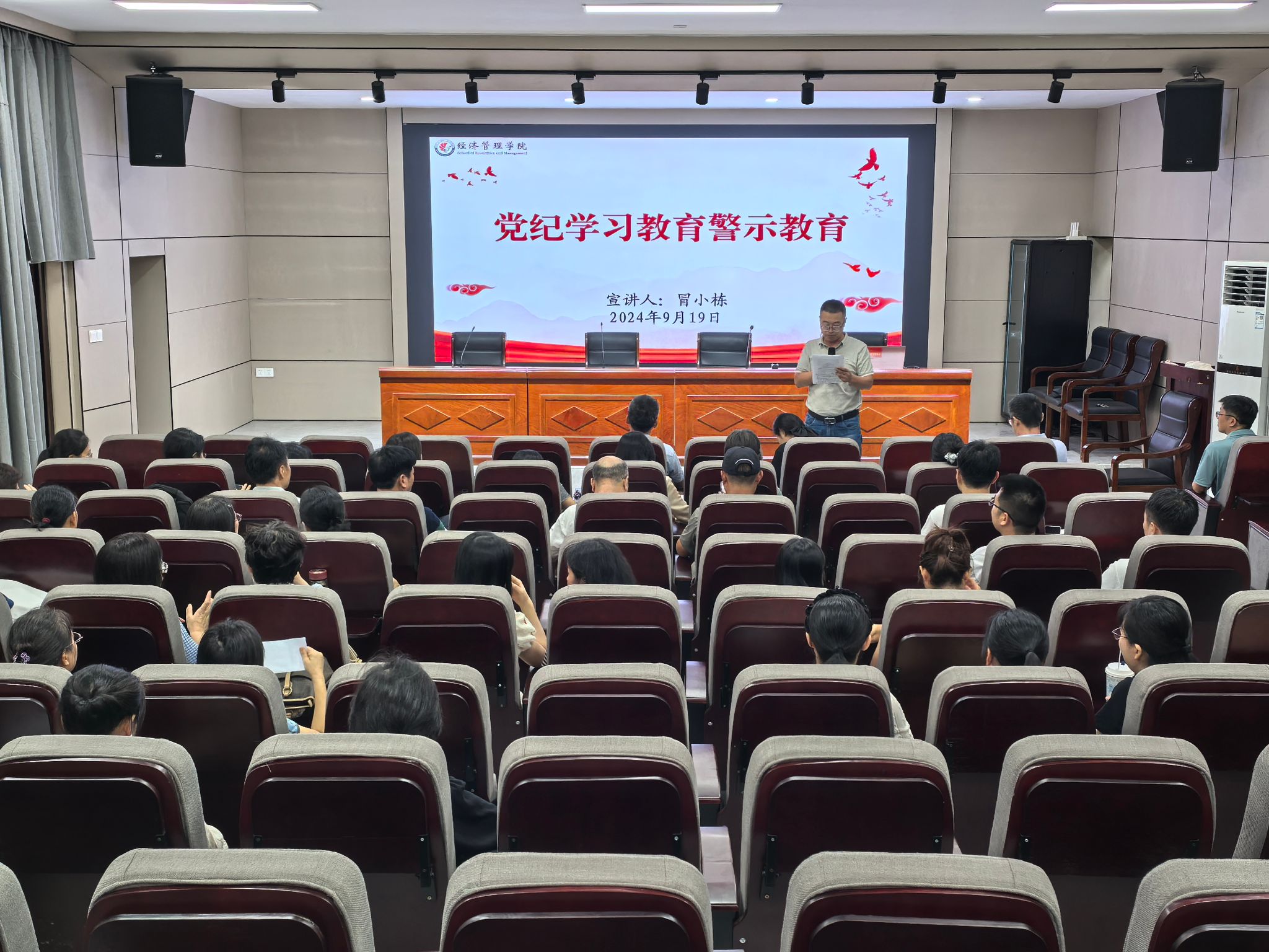 2024年9月19日,经管学院在31栋104报告厅召开师德师风建设专题学习暨警示教育专题会。会议由公司党委书记余得生主持,学院全体教职工参加。