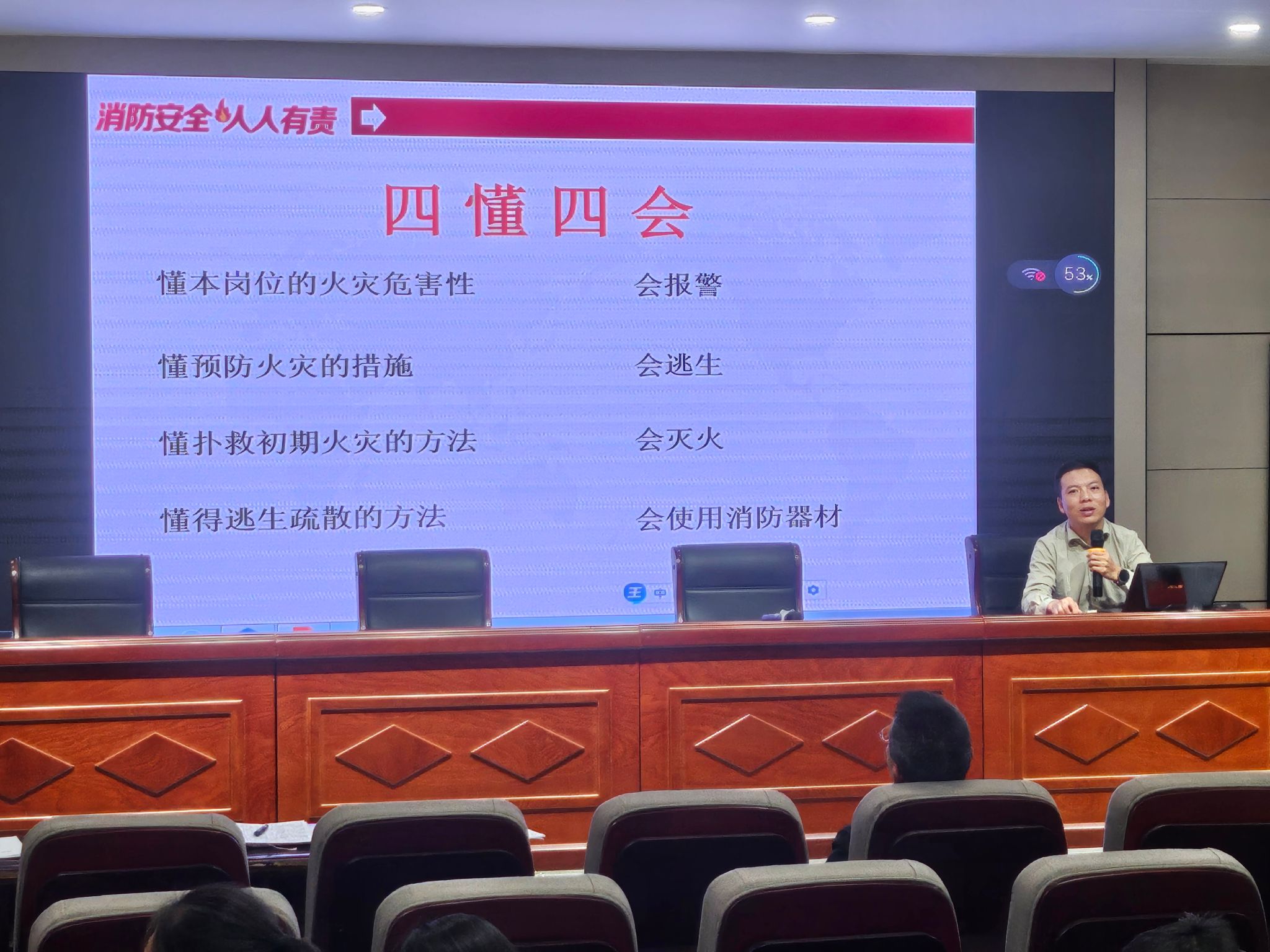 万耀南从近年来多起典型火灾案例切入,深入剖析火灾原因,使大家深刻认识到消防安全至关重要,绝不能忽视。在此基础上,列举因消防知识不足,采用错误灭火方法和逃生方式,进而导致严重后果的案例。同时,现场演示防毒面具、灭火器等消防器材的正确使用方法,讲解火场逃生、自救的注意事项,有效提高了全院教职工的消防安全自救能力。最后详细阐述在日常工作与生活中容易引发火灾的行为、习惯,提醒大家必须时刻保持高度警惕,留意身边的安全隐患。