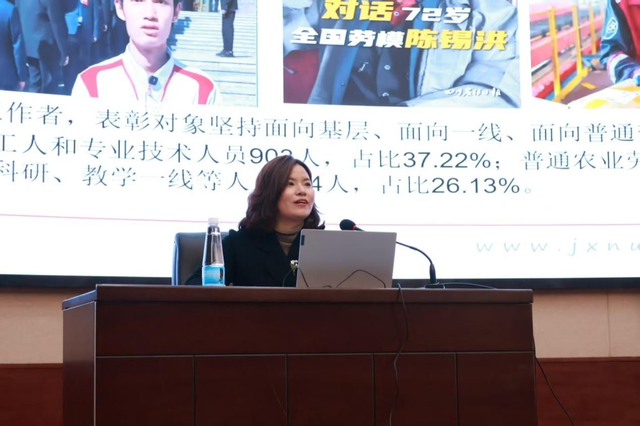 宣讲中,汤美丽以“什么是劳模”引入,并展示了2025年江西省教育系统全国先进工作者们的事迹,她指出,每一个人都是劳模精神的践行者和传承者。